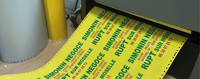 Chez Marchal Pub, nous concevons et fabriquons tous types d’étiquettes adhésives : autocollants, stickers, vitrophanies, adhésifs imprimés, transferts à chaud, sérigraphies, magnets ou vignettes, avec ou sans traitement anti-UV.
